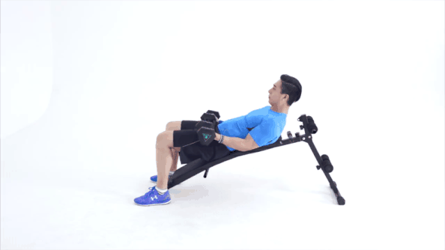 1.平躺于墊子上,啞鈴保持在胸前上推。